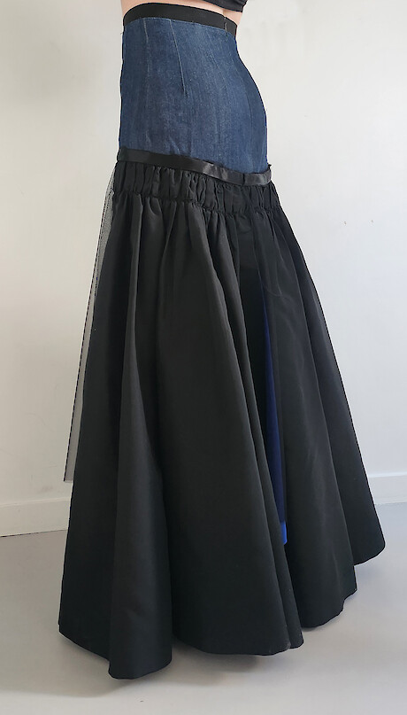 In a world where fast fashion dominates, this skirt embodies a responsible and creative alternative. By giving a second life to vintage materials, it illustrates how fashion can be both sustainable and stylish. This unique piece is an invitation to rethink our relationship with clothing, valuing quality, creativity, and sustainability.