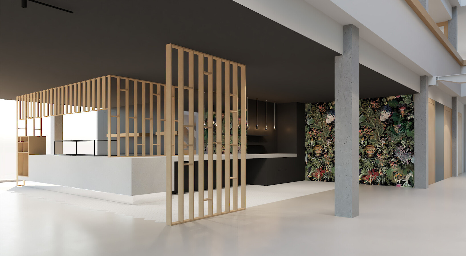view towards the reception area from the restaurant